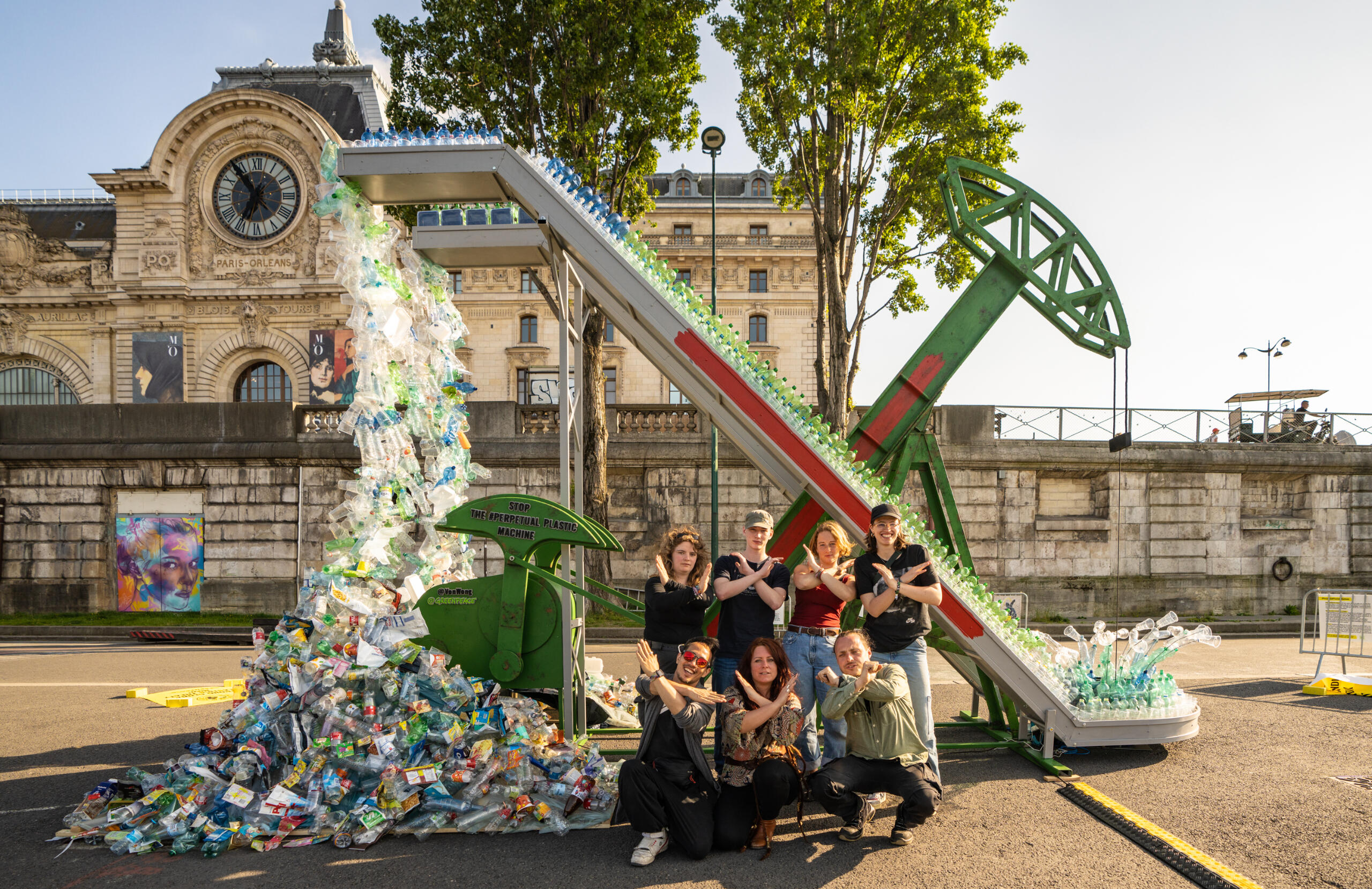 The Perpetual Plastic Machine is a colossal 15-foot tall art installation laying out the toxic union of fossil fuels and plastic production.It is the brainchild of Artist and Activist Benjamin Von Wong, created in collaboration with Greenpeace to demand a legally binding treaty that caps and phases down virgin plastic production while supporting a just transition for workers in the plastics sectors.The Perpetual Plastic Machine physically illustrates the destructive lifecycle of plastics - from extraction to disposal - relentlessly producing plastic, echoing the relentless rhythm of the industry it represents.As we stand on the precipice of INC-2, where the details of the Global Plastics Treaty will be deliberated, we hope this machine will serve as a steadfast visual reminder of the urgency of this issue. We call on you - individuals, organizations, and governments alike - to stand beside us and this symbol of relentless plastic production.Come experience the installation yourself at the Musee d'Orsay between the 27th of May and the 2nd of June.